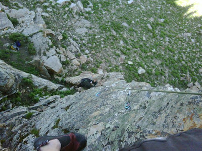 I wish I had pictures of Landon climbing instead of me belaying while he is climbing. I tried to take a picture once (with landon's cell phone - we forgot our camera again), and almost pulled landon off the rock for lack of climbing slack. So, no pictures of climbing, sadly.